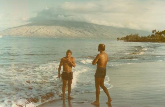 Bruce and Mike making an executive decision for Friendly Charters in early days of the company circa 1983