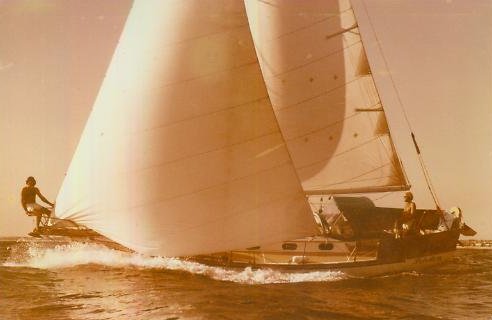 Span sailing the Cape Dory 36, Polivito 2, off Newport Beach in 1982 prior to a year long voyage to Acapulco and back